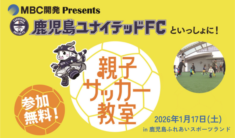 MBC開発プレゼンツ「鹿児島ユナイテッドFCといっしょに!親子サッカー教室」参加者募集